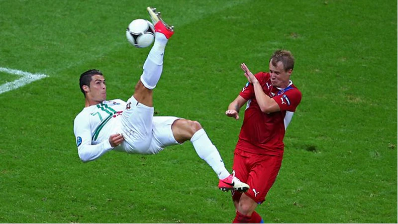 2012年11月,在瑞典对阵英格兰的热身赛中,伊布在禁区外30米处接到队友传球,背对球门起跳,完成了一记惊世骇俗的倒挂金钩,帮助瑞典队4-2战胜英格兰。这一进球被广泛认为是足球史上最佳进球之一。伊布的这一进球不仅展示了他超强的身体素质和精湛技术,更成为了他职业生涯的代表作。C罗(皇家马德里 vs 尤文图斯,2018)