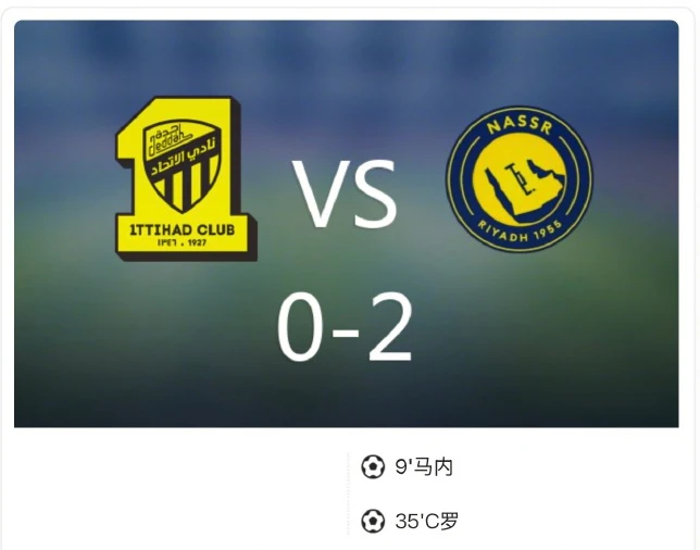 比赛伊始,利雅得胜利便迅速占据主动。第9分钟,拜仁旧将科曼右路突破下底传中,马内后点无人盯防,凌空抽射打进精彩世界波,为利雅得胜利取得领先。第35分钟,马内左路一对一面对防守闪开角度传中,c罗犹如鬼魅般跑位突然出现在皮球落点,一记强力头球将球顶入球门,利雅得胜利2:0扩大领先优势。