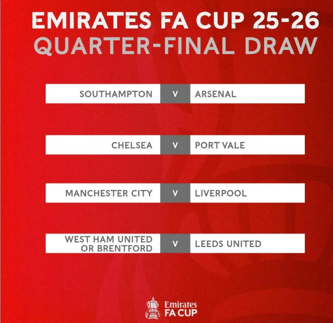 根据英足总最新规则,本赛季足总杯已完全取消重赛制度。四分之一决赛定于4月4日至5日的周末进行,若90分钟内战平,双方将直接进入加时赛;若加时赛仍未分出胜负,则以点球大战决出胜者。