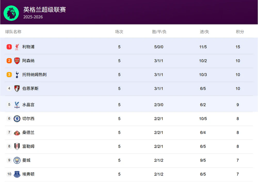 利物浦在新赛季开局表现强势,5场比赛全部取胜,展现了强大的实力和竞技状态。他们在进攻端火力全开,防守端也表现出色,是目前英超唯一一支全胜的球队。利物浦的出色表现离不开主帅克洛普的战术安排以及球员们的出色发挥,萨拉赫、马内等球员在进攻端屡屡建功。阿森纳:黑马之姿强势崛起