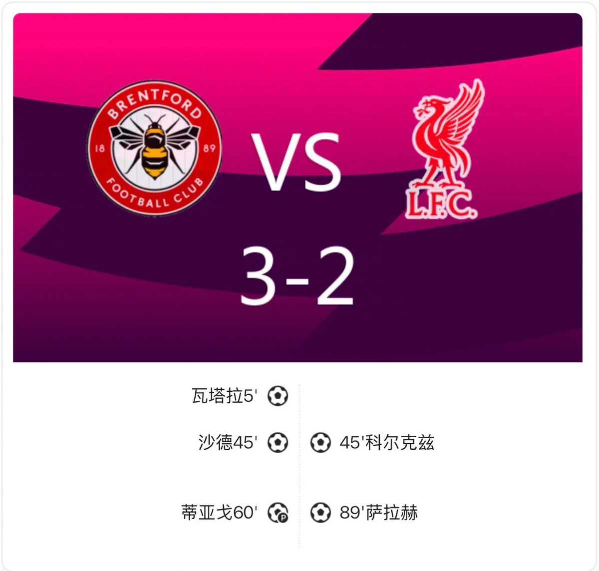 - 闪电开局:第5分钟,“手榴弹”界外球战术奏效,瓦塔拉侧勾破门,布伦特福德1-0。