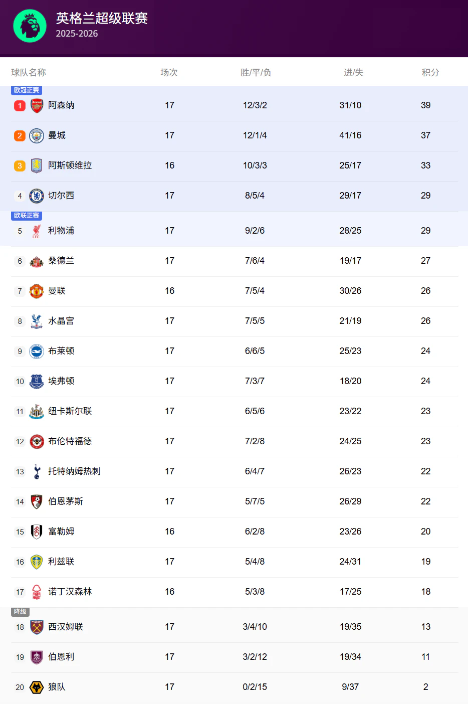 本轮过后,阿森纳暂时领跑积分榜,曼城紧随其后,而利物浦的胜利也让其在积分榜上有所提升,争冠与争四的形势都变得更加复杂和激烈。
