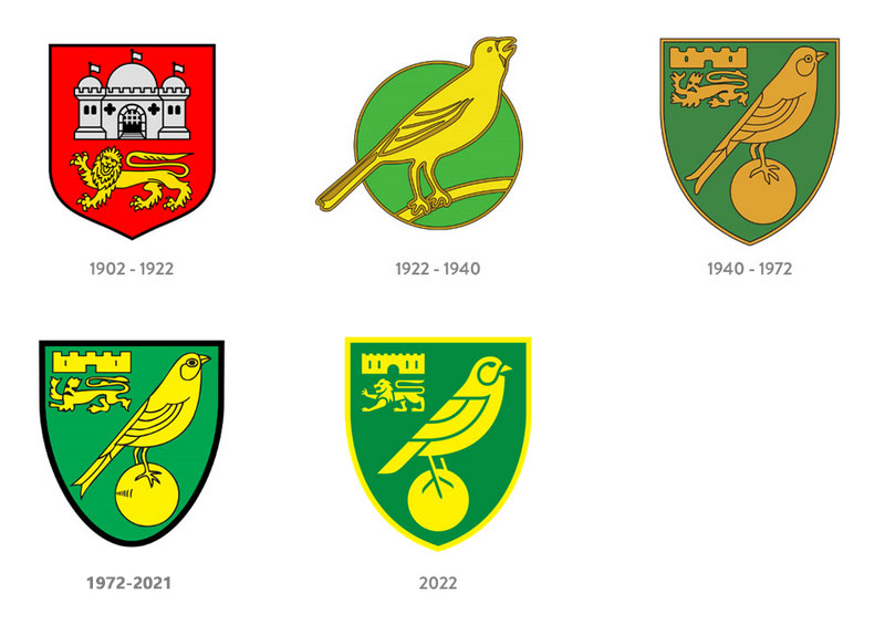 诺维奇队徽演变史:队徽中一直采用金丝雀的形象,这也是该队绰号的由来。如今的队徽,是在1972年的设计大赛中选出的作品。